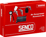 Omschrijving: De Senco perslucht compressorset bevat een assortiment handige accessoires voor verschillende toepassingen. Deze set bestaat uit de volgende onderdelen: verfspuitpistool, vloeistofspuit, bandenventiel met manometer, blaaspistool en een spiraalslang.